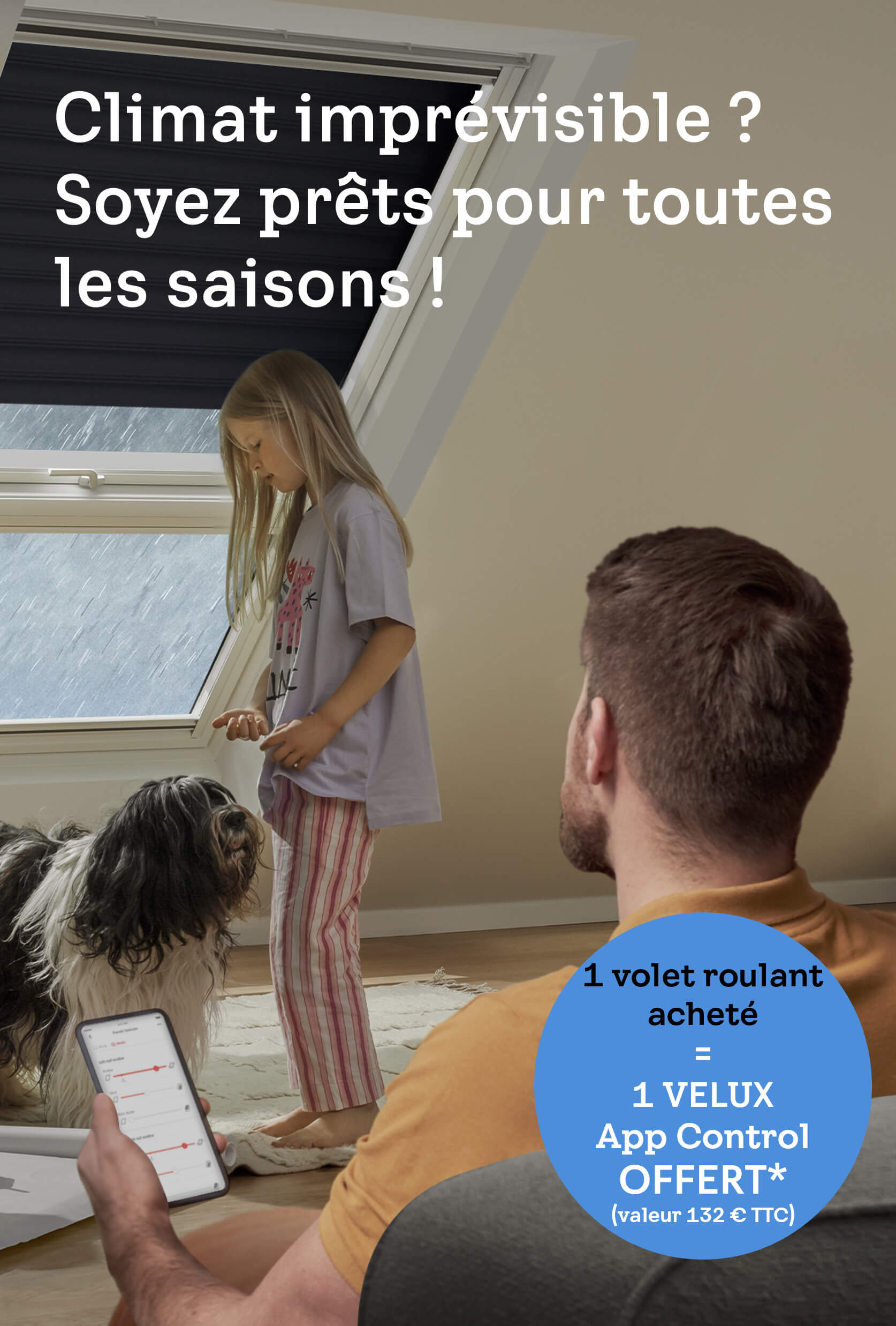 Protégez votre maison pendant toutes les saisons ! Complétez le formulaire et recevez gratuitement le VELUX App Control pour tout achat d'un volet roulant VELUX.