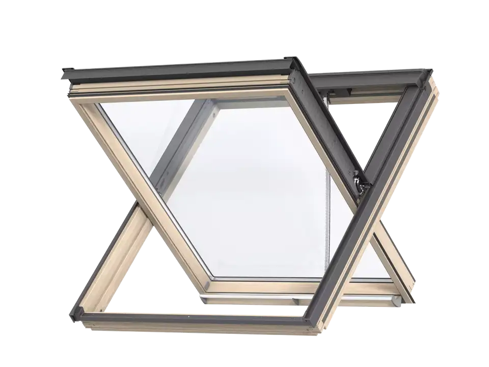Das Rauch- und Wärmeabzugsfenster GGL ist ein elektrisches Schwingfenster aus Kieferholz für erhöhte Ansprüche an die aerodynamische Öffnungsfläche. Es basiert auf dem gleichen äußeren Design andere VELUX Dachfenster.